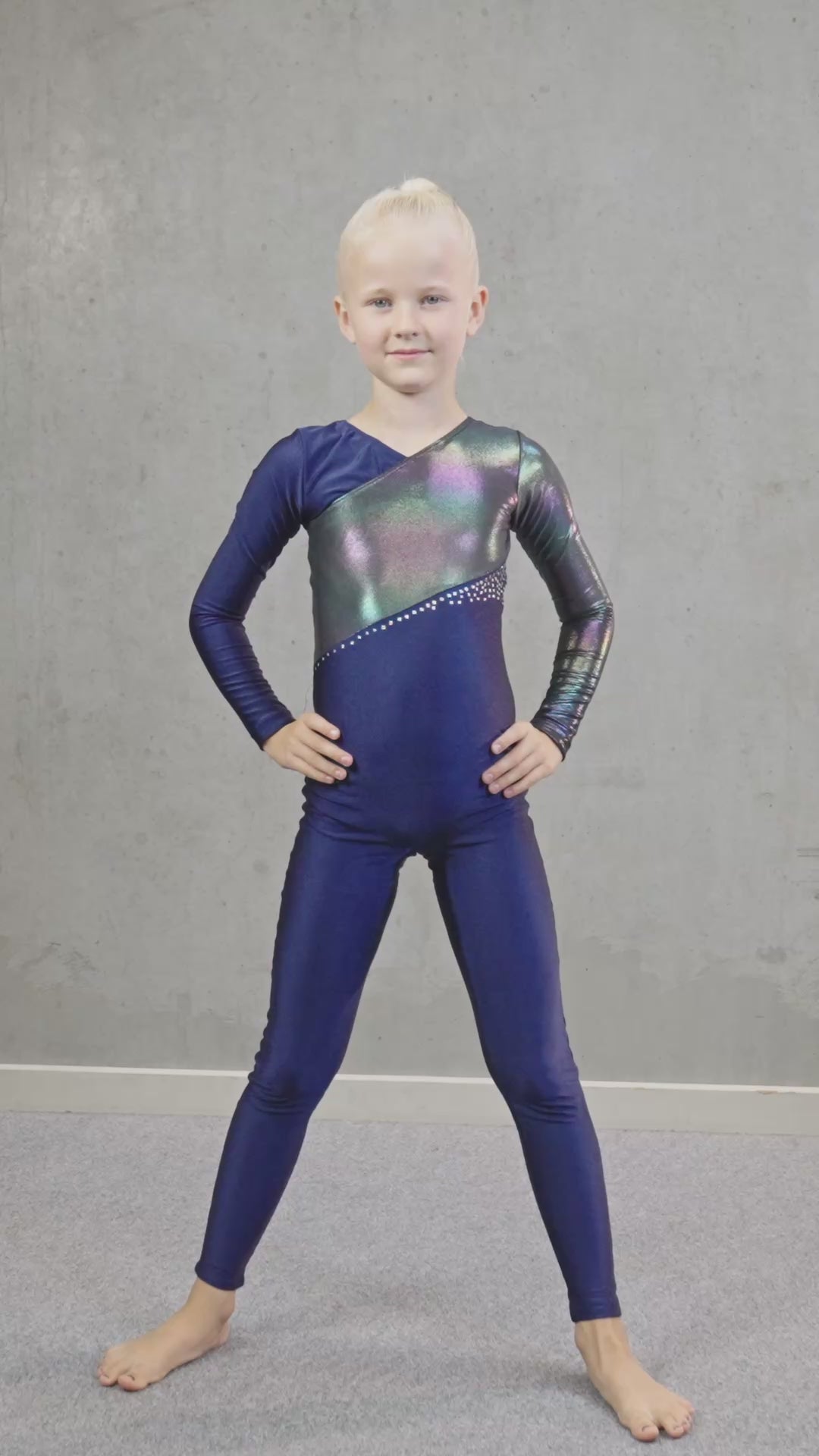 Trening møter konkurranse. Mange barn ønsker seg “en ekte gymnastikkdrakt” til den ukentlige treningen. Her har dere den. En gymnastikkdrakt med både glitter og paljetter som får gymnasten til å skinne i hallen. Heldrakt med lange ermer – perfekt for de tidvis kalde gymsalene.